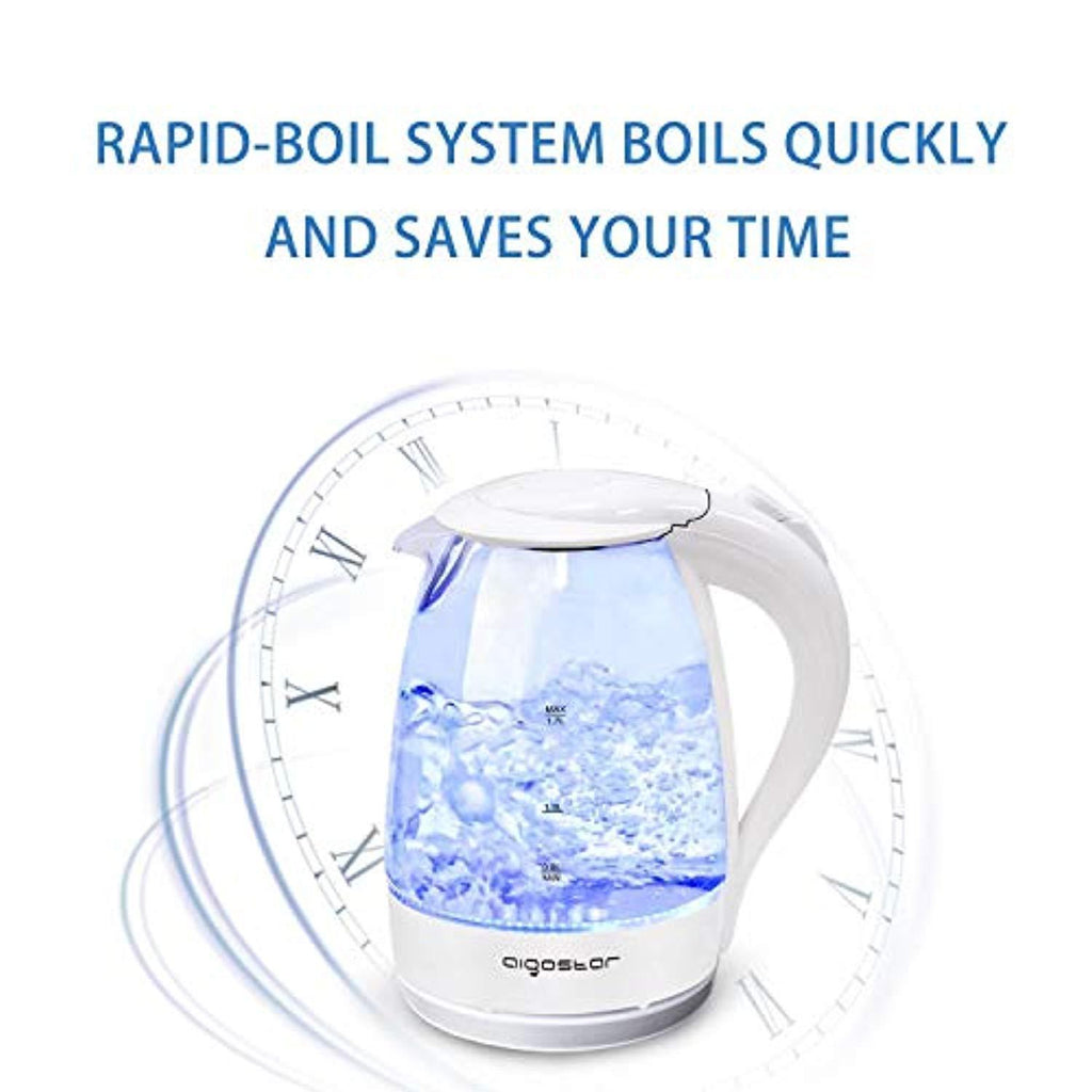 【FDA Approved Glass】Made from high quality glass which is durable and stain resistant. All the places in contact with water are health-class material. With 1.7 Liter large capacity and 1100 Watt Power, the kettle heats up and boils rapidly in few minutes up, saving you time when making a cup of hot tea or brewed coffee.