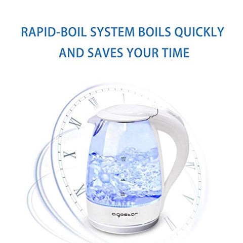 Aigostar Eve - Glass Electric Tea Kettle 1.7L 57OZ Cordless Electric Kettle for Boiling Water with Blue Led