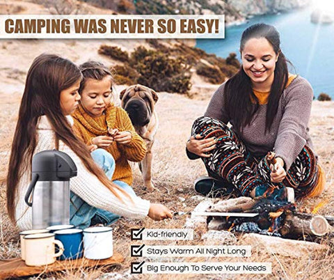 Airpot Coffee Carafe - Thermal Beverage Dispenser (102 oz.) By Vondior. Insulated Stainless Steel Coffee Thermos Urn For Hot/Cold Water, Pump Action Airpot, Party Chocolate Drink