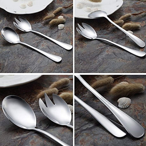 ( ⊙ o ⊙ ) DESIGNED WITH SALAD SPOON AND FORK: Made of high quality stainless steel with a mirror finish. You can use this set to serve salad, it also can be used separately for serving a variety of foods at the table too.Designed with a cleaning cloth, Cleaning cloth to protect your hand. Easy to clean and dishwasher safe.