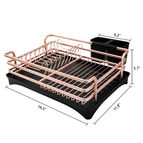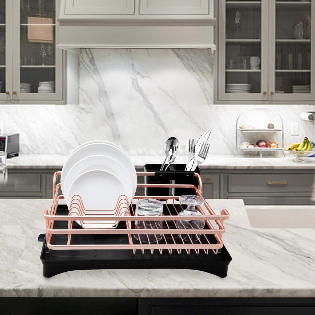 • PRACTICAL CAN BE BEAUTIFUL – THIS ROSE GOLD DISH DRYING RACK PROVES IT! upgrade your kitchen with our beautiful copper dish rack with drainboard, a unique aluminium dish drying rack is the perfect complement to copper kitchen accessories or décor; a great gift idea for cooking fans, décor enthusiasts, new homeowners, or newlyweds