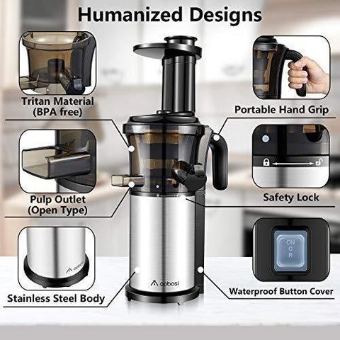 Aobosi Slow Masticating Juicer Extractor Compact Cold Press Juicer Machine with Portable Handle/Quiet Motor/Reverse Function/Juice Jug and Clean Brush for High Nutrient Fruit & Vegetable Juice