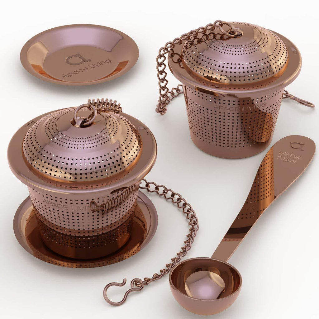 Apace Loose Leaf Tea Infuser (Set of 2) Tea Scoop Drip Tray - Ultra Fine Stainless Steel Strainer & Steeper a Superior Brewing Experience … (Medium, Silver)