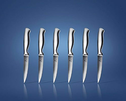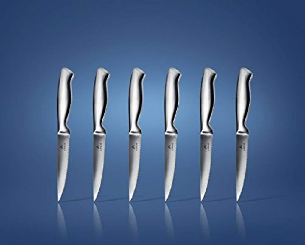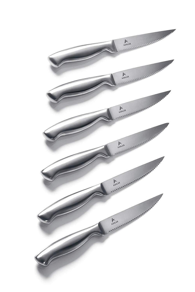 Ashlar Steak Knives Set of 6 Serrated Stainless Steel Dishwasher Safe Ideal Family Dinner Kitchen Set Premium Full Edge Serration Rust Resistant