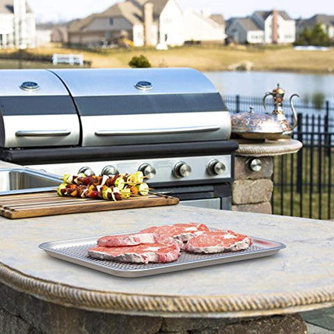 NONSTICK PAN makes it easy to cook your favorite meals to perfection every time. You get less burning and you won't spend hours scrubbing food debris off the pan. Unlike other baking trays, this unit maintains a new look by preventing burn marks, grease stains, and rust. In addition to baking pastries in convection ovens, the set is also great for roasting and cooling meats and vegetables.