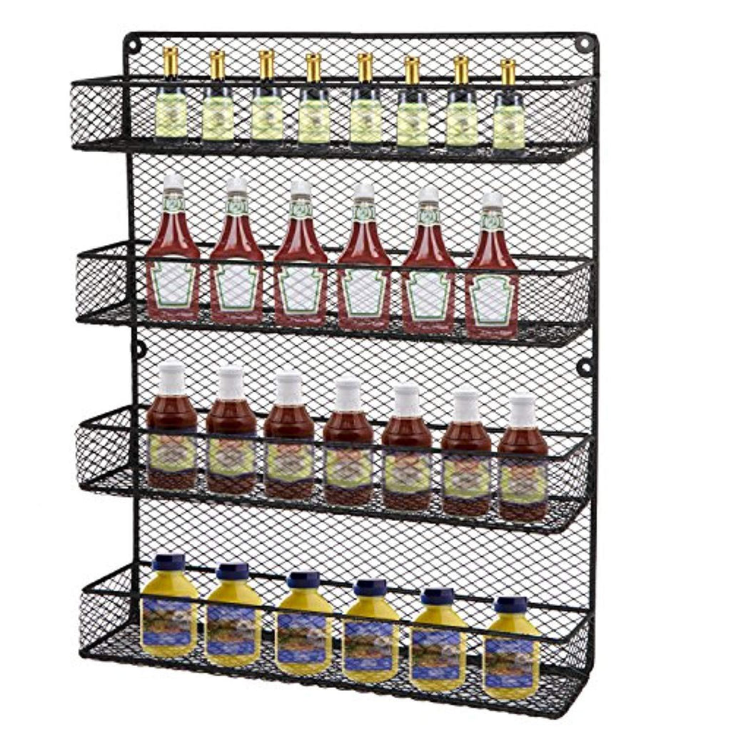 BBBuy 4 Tier Spice Rack Organizer wall mounted Country Rustic Chicken Holder Large Cabinet or Wall Mounted Wire Pantry Storage Rack, Great for Storing Spices, Household stuffs