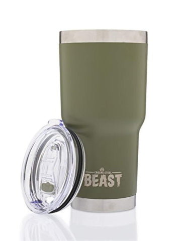 BEAST 30 oz Tumbler Stainless Steel Insulated Coffee Cup with Lid, 2 Straws, Brush & Gift Box by Greens Steel (30 oz, Army Green)