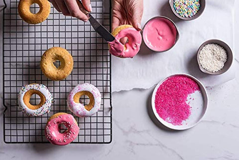 A PERFECT 12.5 X 8.5 PAN | MANUFACTURED 2X STRONG: Your donut pan should be strong. That’s why we chose the most durable steel available that will not warp or bend in the oven’s heat—we guarantee it.