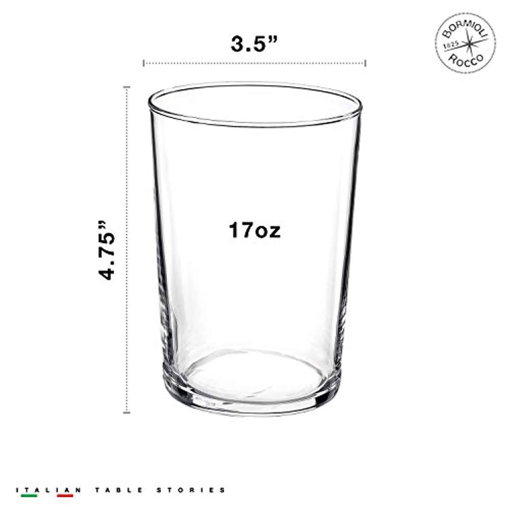 INCREDIBLY DURABLE MATERIAL: Bormioli Rocco’s 17oz glasses are made of premium quality tempered glass. Thanks to this heavy-duty material, our modern cold drink tumblers are resistant to thermal shock, breakage, chipping and dishwasher wear.