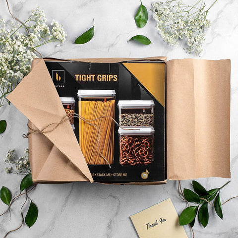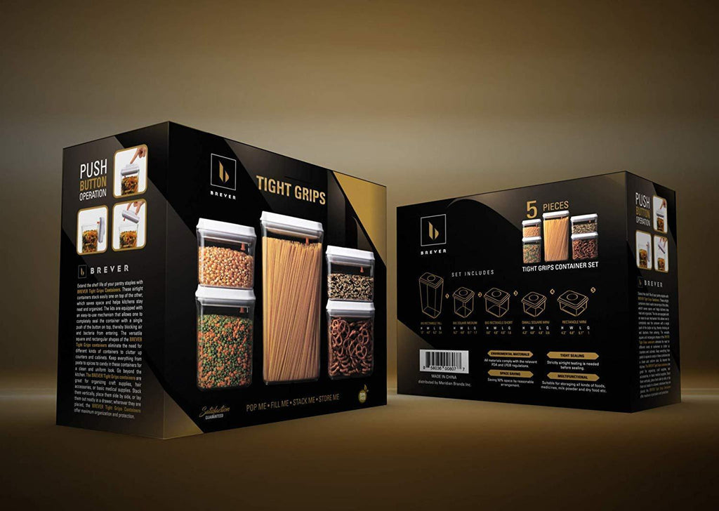 🎁 BREVER 5-PC AirTight Push Pop Food Storage Container Set Value Pack - Cereal, Flour, Sugar, Pasta, Rice - 100% BPA FREE, 5 Yr Warranty