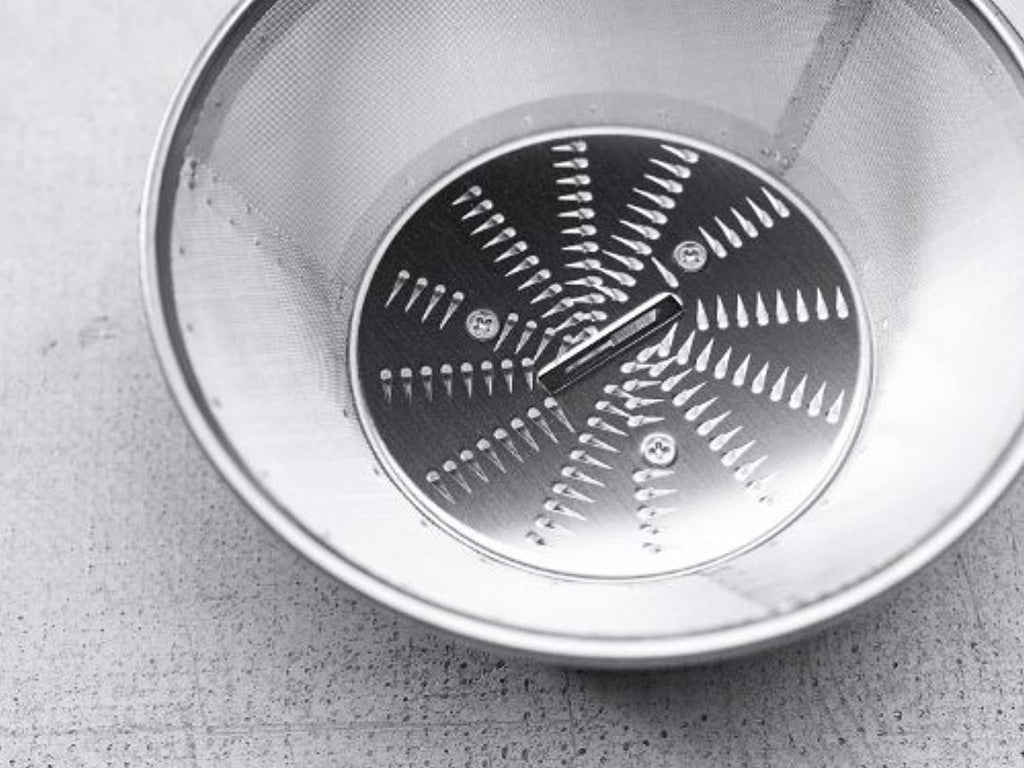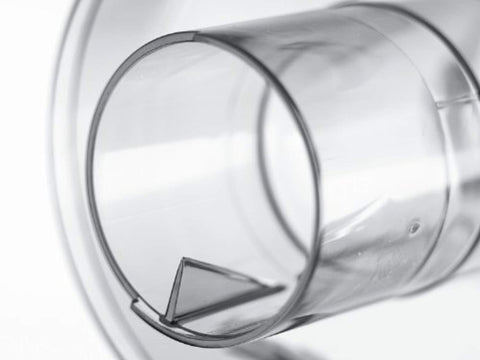 Extra-large 3-inch centered feed tube. Heavy Grade Polymer Body, Stainless steel cutting disc surrounded by Italian made micro mesh filter to extract up to 30 percent more juice and 40 percent more vitamins