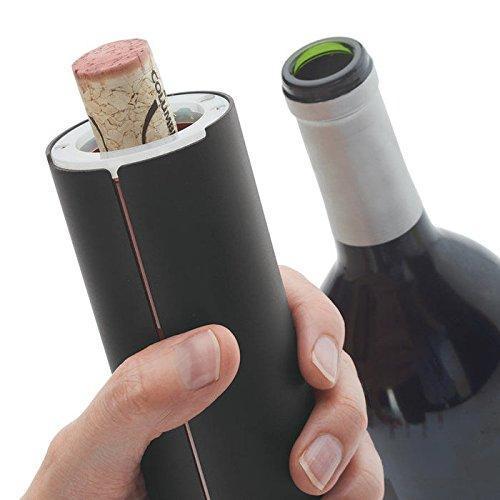 Buttonless operation—just place opener over the cork and push Automatically ejects the cork when turned upside down Opens up to 60 bottles per charge Works with both natural and synthetic corks Includes magnetic foil cutter