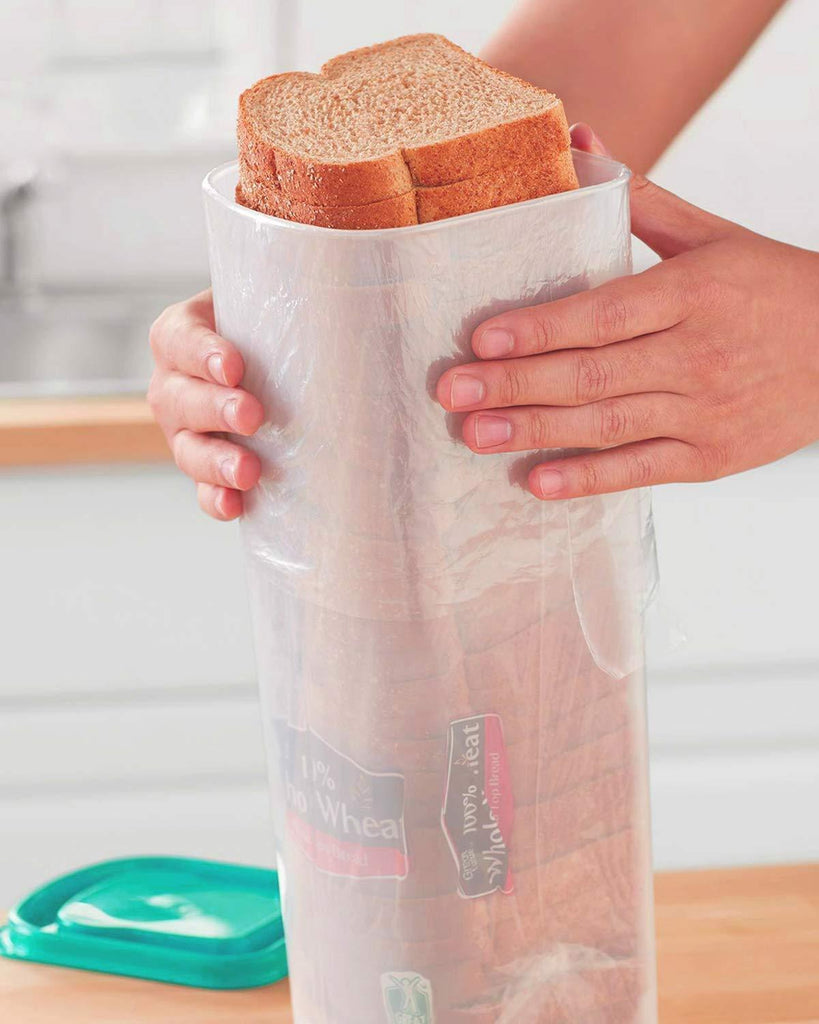 Buddeez Bread Container - Plastic Storage Keeper, Loaf, Aqua Lid