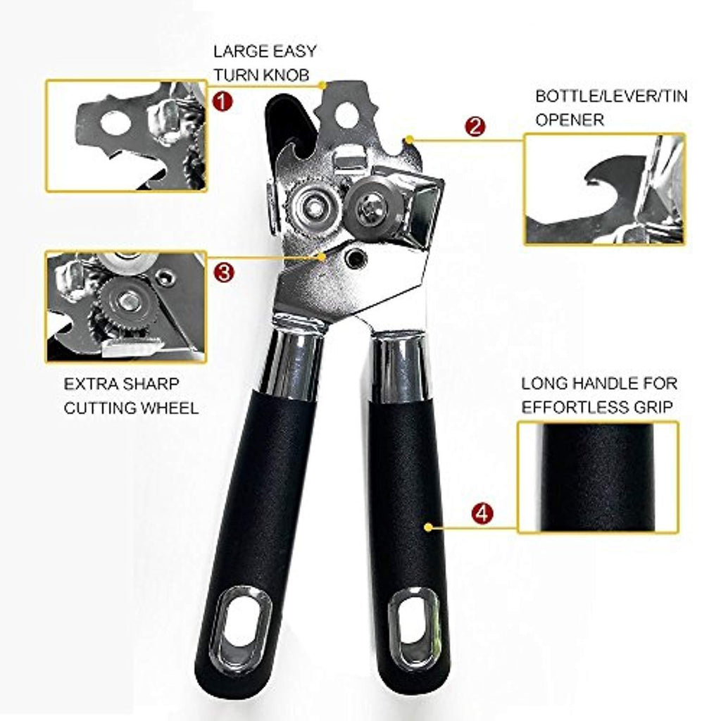 HIGH QUALITY MATERIAL: Made from FDA approved and food grade stainless steel, corrosion resistant and durable can opener with long service time