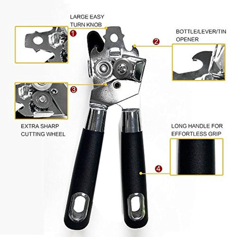 Can Opener, Manual Bottle Tin Opener Smooth Edge Heavy Duty Stainless Steel with Anti-slip Hand Grip