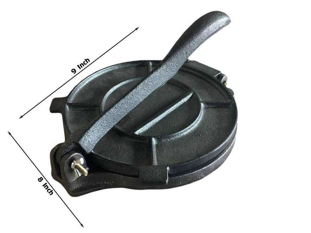 Cast Iron Tortilla Press - Flour Corn Flatbread Pita Press Maker - 8 Inch - Black