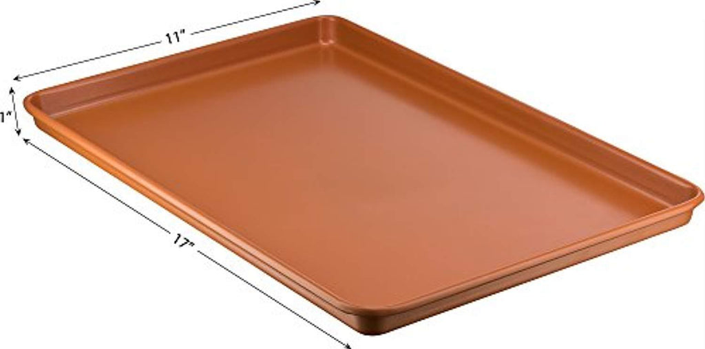 HEAVY DUTY BAKEWARE: Made from strong ceramic coated copper, our durable baking sheets are built to last. They don't let off copper or any other taste or substance into your food.