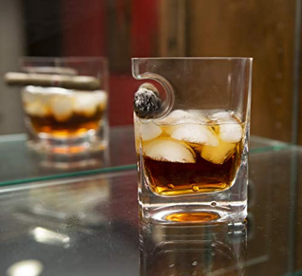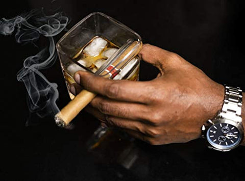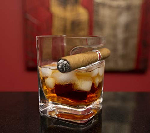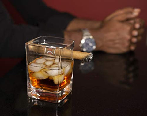 Cigar Glass Holder - Drinking Cup Whiskey Scotch Wine Bourbon - Square Mug Cigarette - Man Perfect Gift Set Accessory - Unique Luxury Old Fashioned - Smoke Lovers & eBook by E2F by STS SUPPLIES LTD
