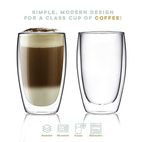 • THE PERFECT GIFT SET: For 15 ounce / 443 ml of amazing coffee, milk, espresso, latte, hot and cold, or just about any drink you can think of, these ultra light, clear double-wall mugs are the kitchen essential you need!