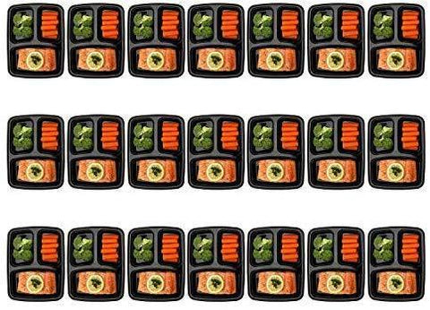 • A COMPLETE MEAL IN ONE BOX + PORTION CONTROL: This 15-Pack set of Bento Boxes features 3 different compartments so you can freeze or take with you a complete meal just in one container. Use them for your main course, salad and dessert and enjoy your meal everywhere, hassle free. Each meal prep container can store a total of 32oz (16-8-8 oz) which are the perfectly controlled portions to stay full, yet fit and healthy!