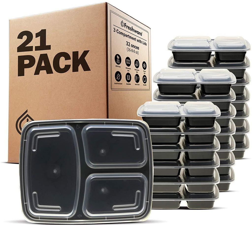• VERSATILE FOOD STORAGE CONTAINERS: The convenient dimensions (9.7 x 7.5 x 1.5”) and the thoughtful division of this set makes these reusable plastic food prep containers great for a variety uses, including restaurant & deli takeout, bento box for work, foodsavers, and are recommended by fitness experts for meal prep, portion control, and 21 day fix. Trust a 5-Star Product and the LIFETIME Replacement or Refund policy of Freshware. Order Yours Today!