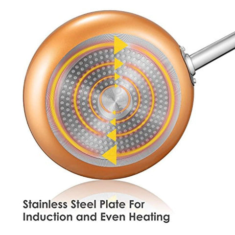 DEIK Frying Pan Set, Non Stick Fry Pan set, Induction frying pan set with 8 inch Omelette pan, Saute Pan 9.5 inch, Chef Pan 11 inch, coated with Double layer pan Set 3 Pack with 3 Spatula and Spoon