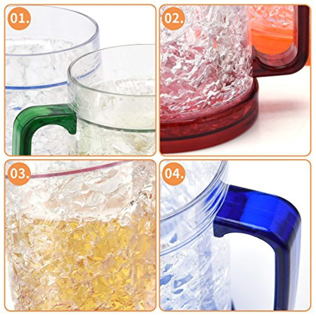 PERSONALITY BEER MUGS: With the unique double-color injection, this set of freezer mugs is cool. Various colors allow you to distinguish between different cups.
