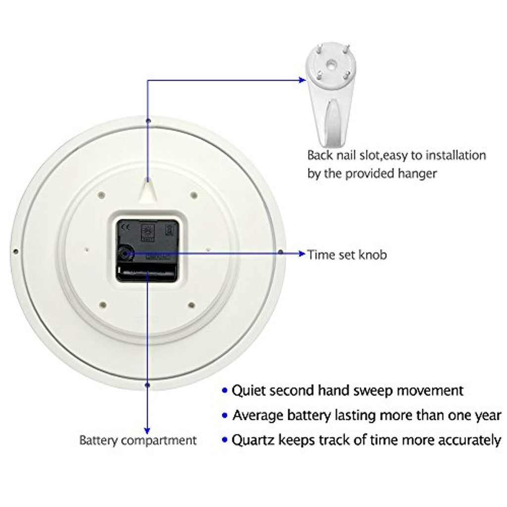 Unlike other using cardboard as clock background that easy damaged in moisture and wet season, this clock back base are made of solid plastic, therefore remain well function and dry in any weather condition.