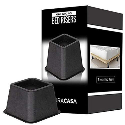 DuraCasa Bed Risers - Raises Your Bed or Furniture to Create an Additional 3 Inches of Storage! Reinforced New Heavy-Duty Design to Hold Over 2000 LBS! Desk, Sofa, and Chair Lift (Set of 4 Risers)