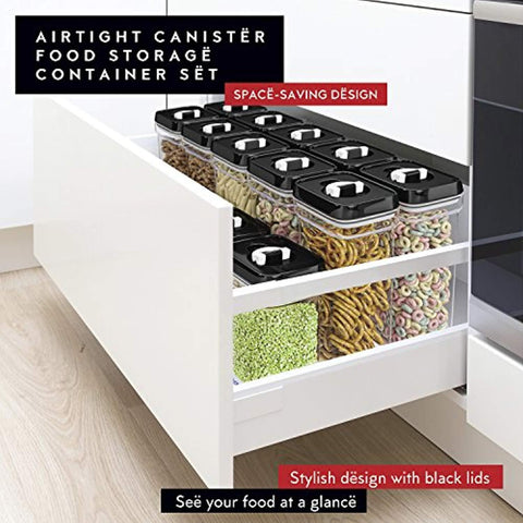 • GIVES AN ELEGANT LOOK ON THE COUNTER: With beautiful black lids and a clear body, the rectangular plastic airtight sealed container canister set spruces up your kitchen while allowing you to easily monitor the contents. It is also stackable to take full advantage of vertical space for your pantry organization.