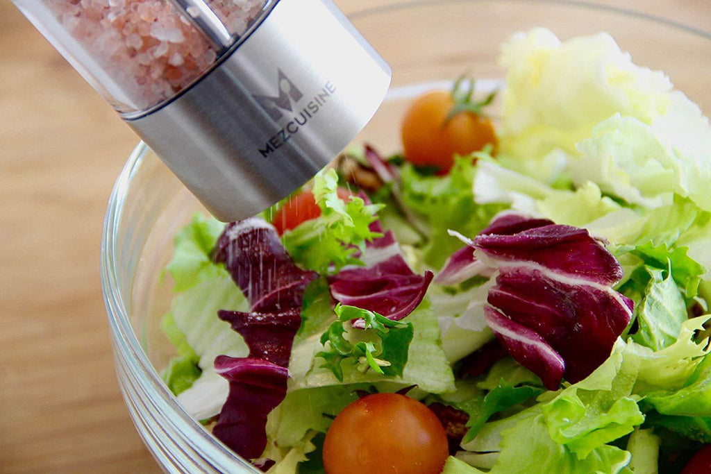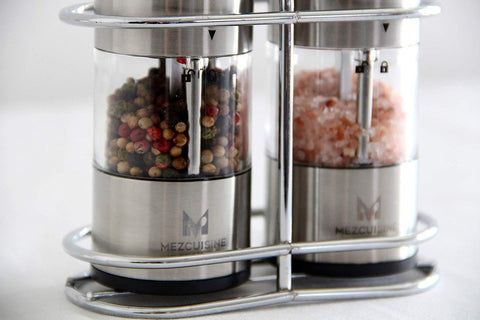 EFFORTLESS BY PRESSING ONE BUTTON to grind any spice evenly saving you time | Its way faster when compared with old pepper grinders or shakers giving you all the flavour of minced spices | You will season your food like a pro when cooking with Mezcuisine Salt and Pepper Grinder Set feeling the fantastic ergonomic shape specially designed to make you a natural chef | Master the art of seasoning by controlling the multiple coarse sizes available to you