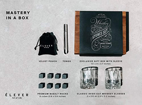 ÉLEVER - Whiskey Stones and Whiskey Glasses Gift Set - Premium Chilling Rocks