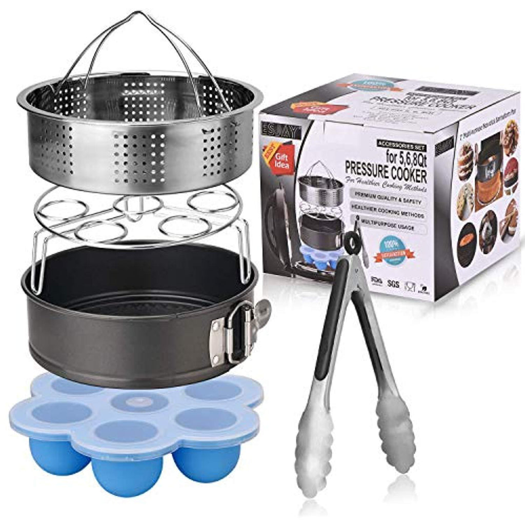 Esjay Accessories Set for Instant Pot-Fits 5,6,8Qt Instant pot Pressure Cooker,5-Pcs with Steamer Basket/Egg Steamer Rack/Egg Bites Molds/Non-stick Springform Pan/Kitchen Tongs,Best Gift Idea