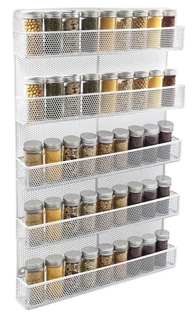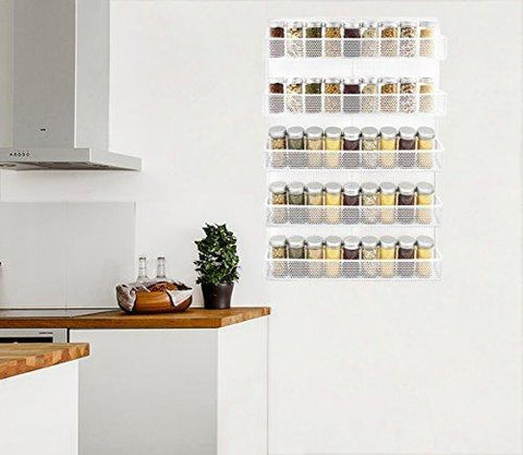 ESYLIFE 5 Tier Wall Mount Spice Rack Organizer Kitchen Spice Storage Shelf - Made of Sturdy Punching Net, White