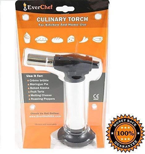EverChef Premier Culinary Kitchen Torch - Chef Recommended - Professional Grade with Safety Features - Refillable Butane Blow Torch - Great for Crème Brulee, Pastries and Other Delicious Dishes