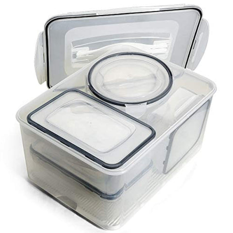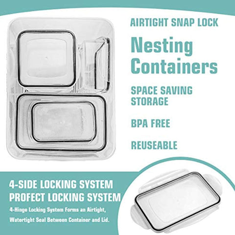 ๐ 8 SIZES TO MEET ALL YOUR STORAGE NEEDS.๏ผAirtight snap lock lids container includes: (1PC) 8L rectangular container, (2PC) 1050ml large rectangular containers, (1PC) 1000ml large round container, (1PC)600ml medium round container, (2PC) 550ml square containers, (2PC) 420ml small rectangular containers, (1PC) small 300ml round container.