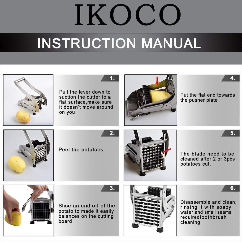 French Fry Cutter, IKOCO Stainless Steel Potato Chipper Cutter with 1/2-Inch Blade, A Strong Suction Rubber Pad, for Potatoes, Carrots, Cucumbers and More