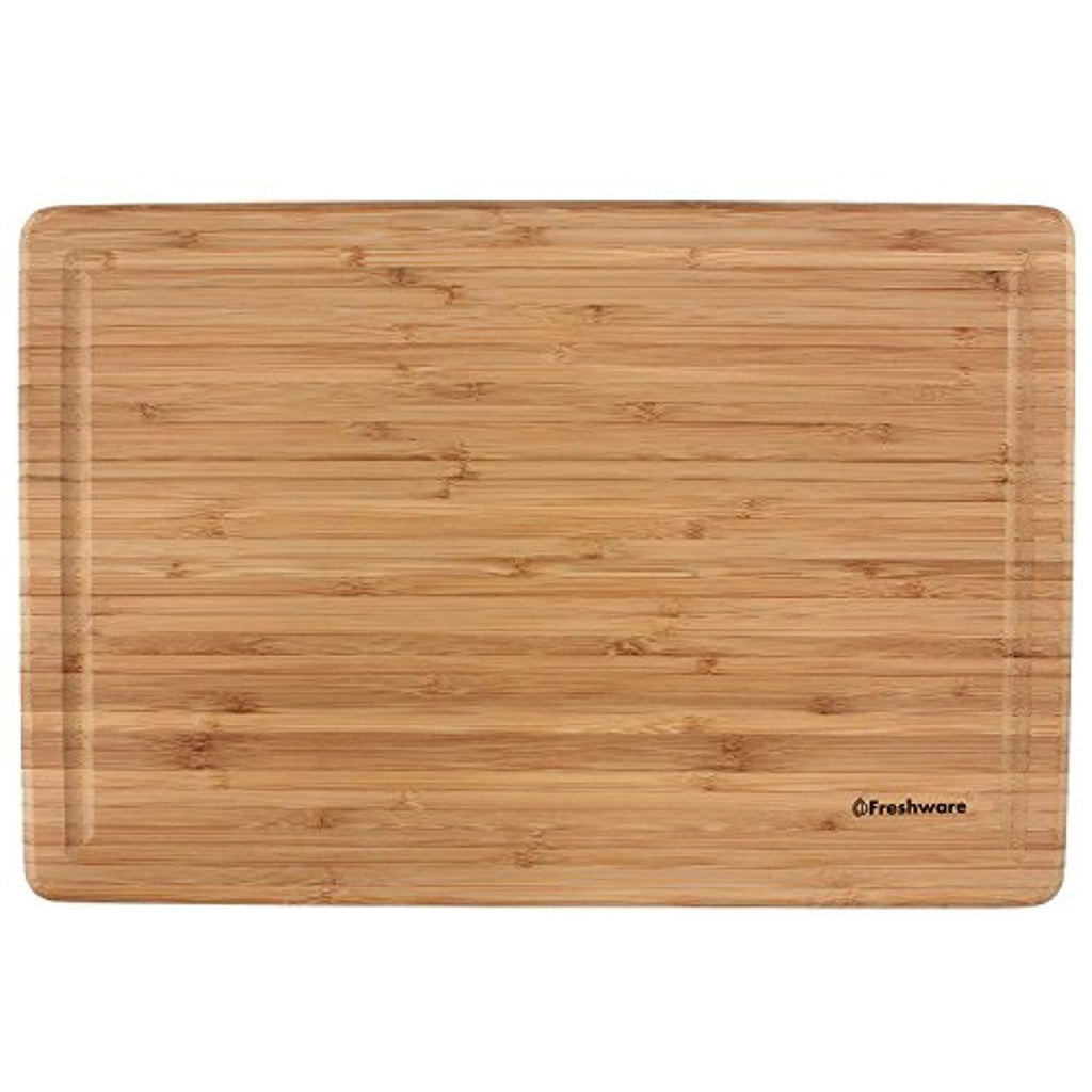 UNIQUE CRAFTSMANSHIP CUTTING BOARD: We here at Freshware, have cleverly designed these boards to satisfy even the most demanding chef needs. Made with all-in-one vertical construction. We have built them that way so as to add extra strength to the cutting board and make cutting and slicing a sweat free process. Choose the extra large 12 x 18 x 3/4 " (30.5 x 45.7 x 1.9 cm).