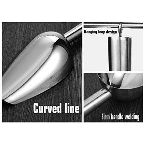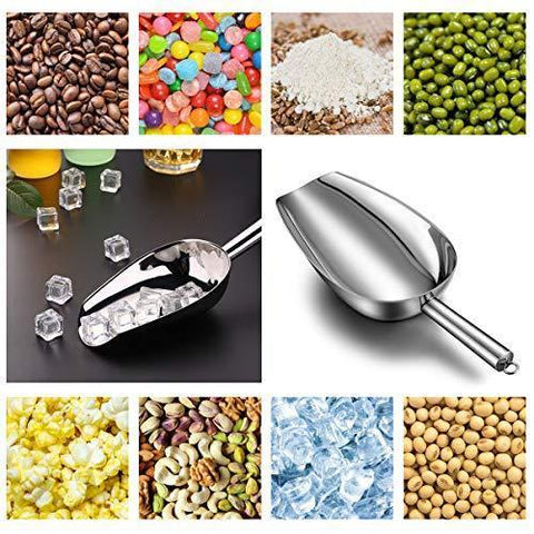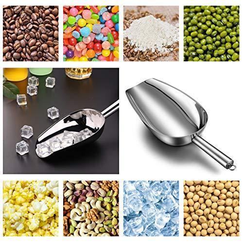 đăMultipurposeăThis stainless steel scoop is universally and effectively used for ice, food, coffee bean, popcorn, flour, candy, cat litter, as so as dog poop scoop, etc.