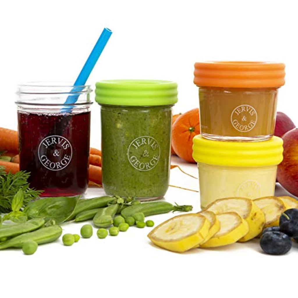 Glass Baby Food Storage Containers - Set contains Small Reusable 4oz and 8oz Jars with Airtight Lids - Safely Freeze your Homemade Baby Food