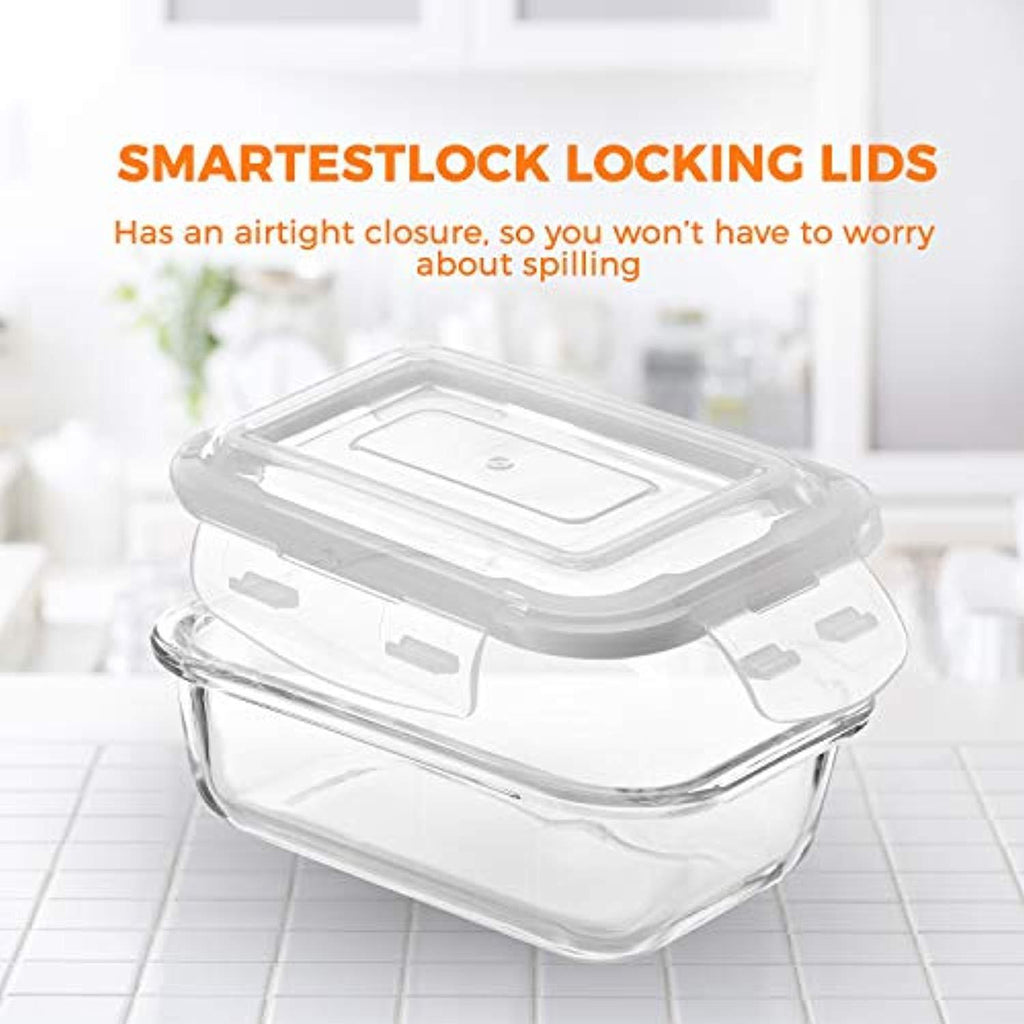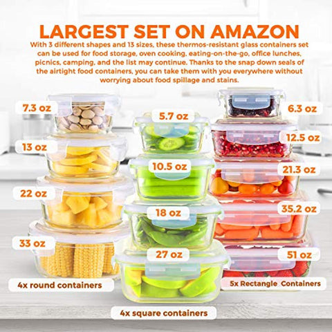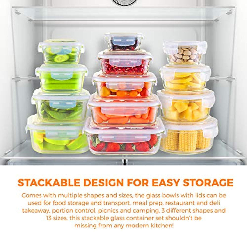 Glass Food Storage Containers [13-piece set] - Meal Prep Leakproof Container With Airtight Snap On Lids - Microwave, Oven, Freezer, Dishwasher Safe. Best For Kitchen, Lunch & Pantry - BPA Free