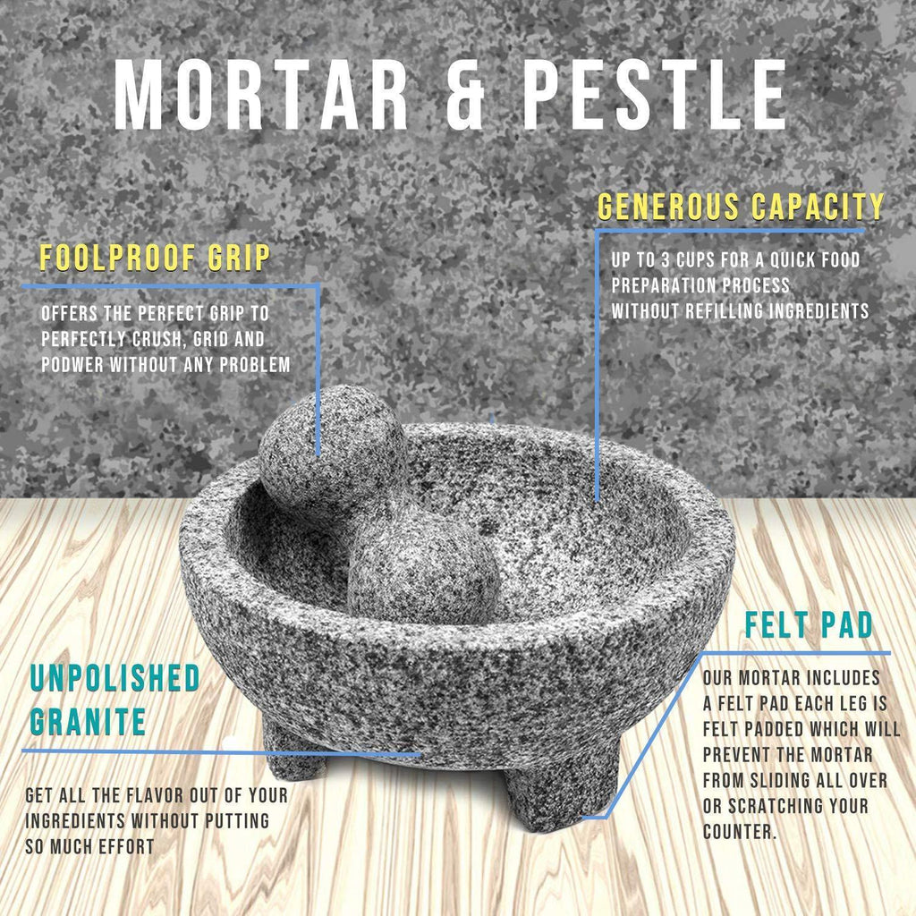 • A MUST-HAVE FOR EVERY HOUSEHOLD – Now you can use this Granite Mortar & Pestle set is to grind, crush, mash and mix any grain, spice or herb and create stunning dishes, including guacamole, salsas, sauces, recipes & more!