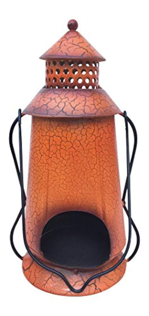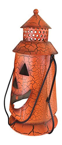 Halloween Pumpkin Rustic Lantern with Handle, - Metal Jack O Lantern Fall Decoration, Standing or Hanging, Holds Pillar Candle - Indoor, Outdoor, by Clovers Garden