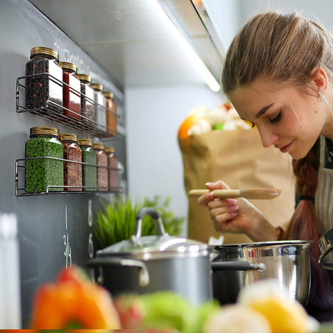 Hanging Spice Rack Organizer: Set of 4 single-tier spice racks provides plenty of storage space. Each spice shelf holds up to 6 spice jars or medicines used daily. Place in kitchen cabinets, pantries, cupboards on walls or doors
