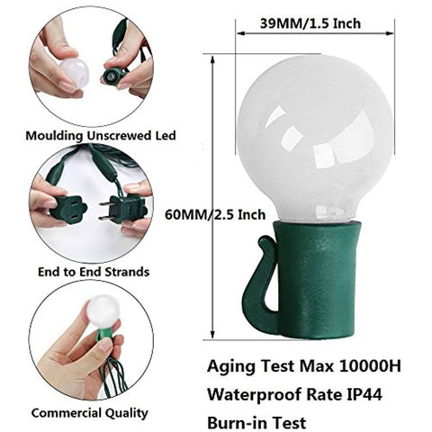 • 100% Refund for Any Quality Problem.Commercial Grade Light Set,Long Life Span,80% Energy Saving,Waterproof rate IP44,The globe housing that goes over the bulb is remove able; it screws on/off. The actual led underneath the globe does not come out,which will make these lights more waterproof and no problem when you use them in heavy rainy days.Recommend Multi and Blue,they are very festive,Warm White and Cool White look Very Pretty and Clean.