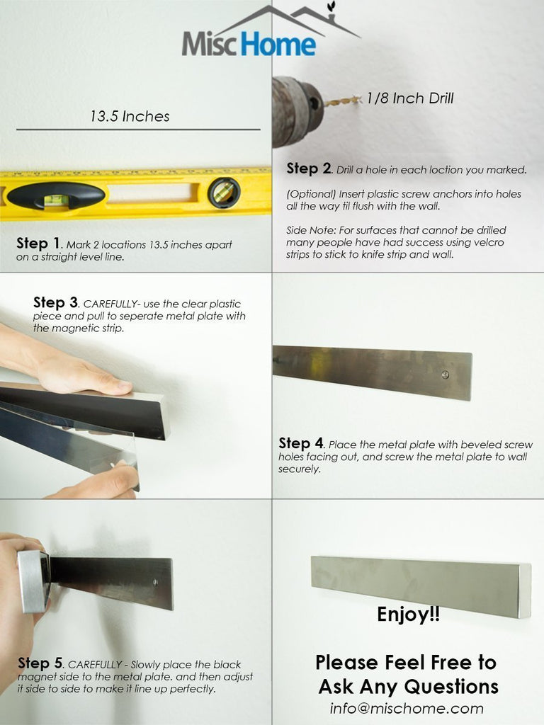 • ♥ STAY ORGANIZED – 16 Inch magnetic knife strip is made for knife organization. Use this magnetic holder in the kitchen, office, laundry room or garage to hold any metal objects.