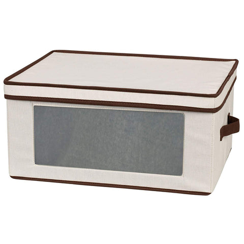 Household Essentials 542 Vision Storage Box with Lid and Handles | Wine and Balloon-Style Glasses | Natural Canvas with Brown Trim