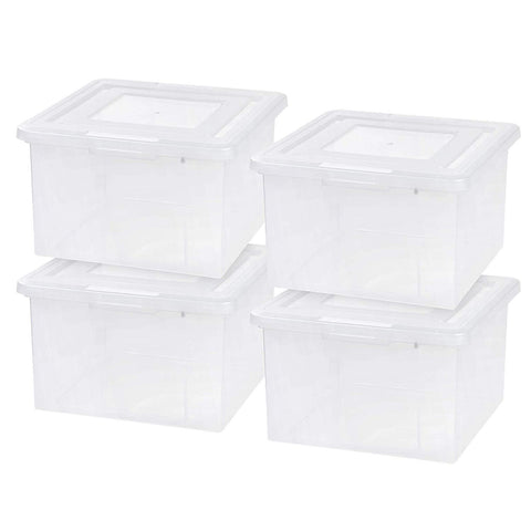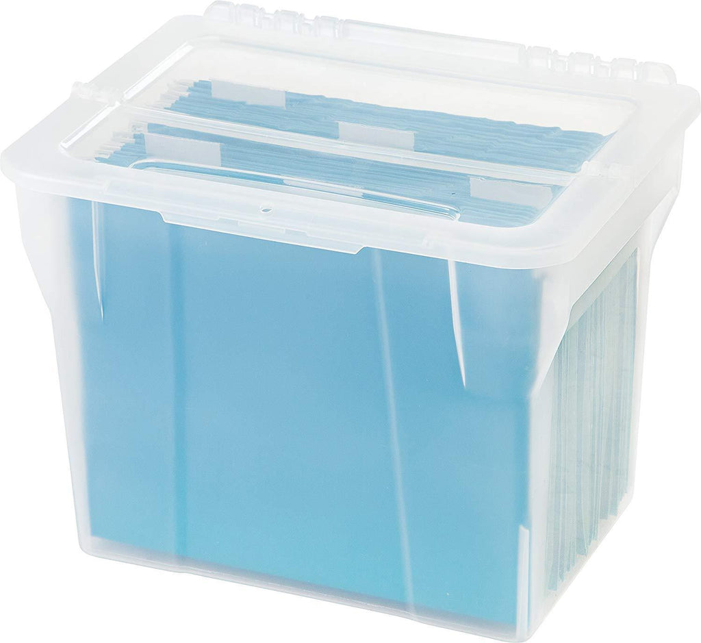 Maximize your file storage space with these durable plastic file boxes File storage container easily holds either letter or legal hanging file folders Snap tight plastic file storage lid keeps contents secure Stack multiple hanging file totes on top of each other to save space This letter and legal size file box is made of durable economical repurposed raw material