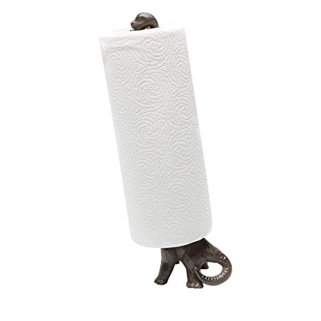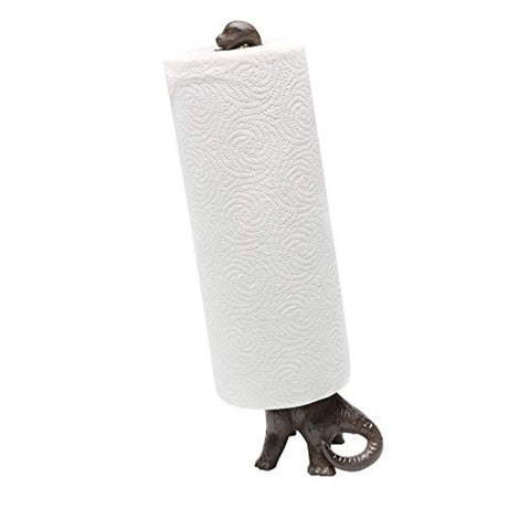 Stands 14.25"H x 4.25"L x 3.25"W The neck measures 10.5" Quality paper towels need to be used so the they will not unravel Could be used for toilet paper, too Unique design made of cast iron Weighs over 2 pounds
