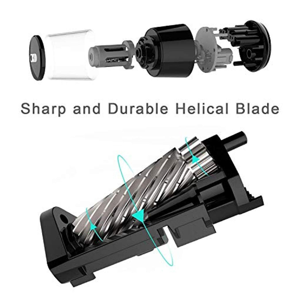 【Powerful Motor】With heavy-duty and durable helical blade, fast sharpening for 5-10 seconds and auto-stop working at a perfect point to protect pencil lead and dispose of the broken lead intelligently. Fit for sharpening #2 pencils, colored pencils, charcoal pencils, etc.